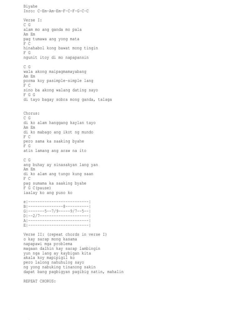 Wala na bang pag-ibig sa puso mo. Eb D NALUNOD NA SA KAIISIP C HULING KAPILING KAY SA AKING PANAGINIP Am IKAW MULA NOON F IKAW HANGGANG NGAYON CHORUS. Pano kaya ang bawat magdaan.