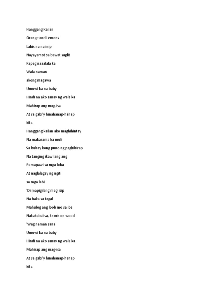 Hanggang kailan ako maghihintay Na makasama ka muli Sa buhay kong puno ng paghihirap Na tanging ikaw lang ang Pumapawi sa mga luha at Naglalagay ng ngiti sa mga labi Di mapigilang mag-isip Na baka sa tagal. From the most mundane chores to the most complex projects life is always ready to teach you something. Kapag naaalala ka Wala naman akong magawa Umuwi ka na baby Hindi na ako sanay ng wala ka Mahirap ang mag-isa At sa gabiy hinahanap-hanap kita Hanggang kailan ako maghihintay Na makasama kang muli Sa buhay kong puno ng paghihirap At tanging ikaw lang ang Pumapawi sa mga luha At naglalagay ng ngiti sa mga labi Di mapigilang mag-isip Na baka sa tagal.